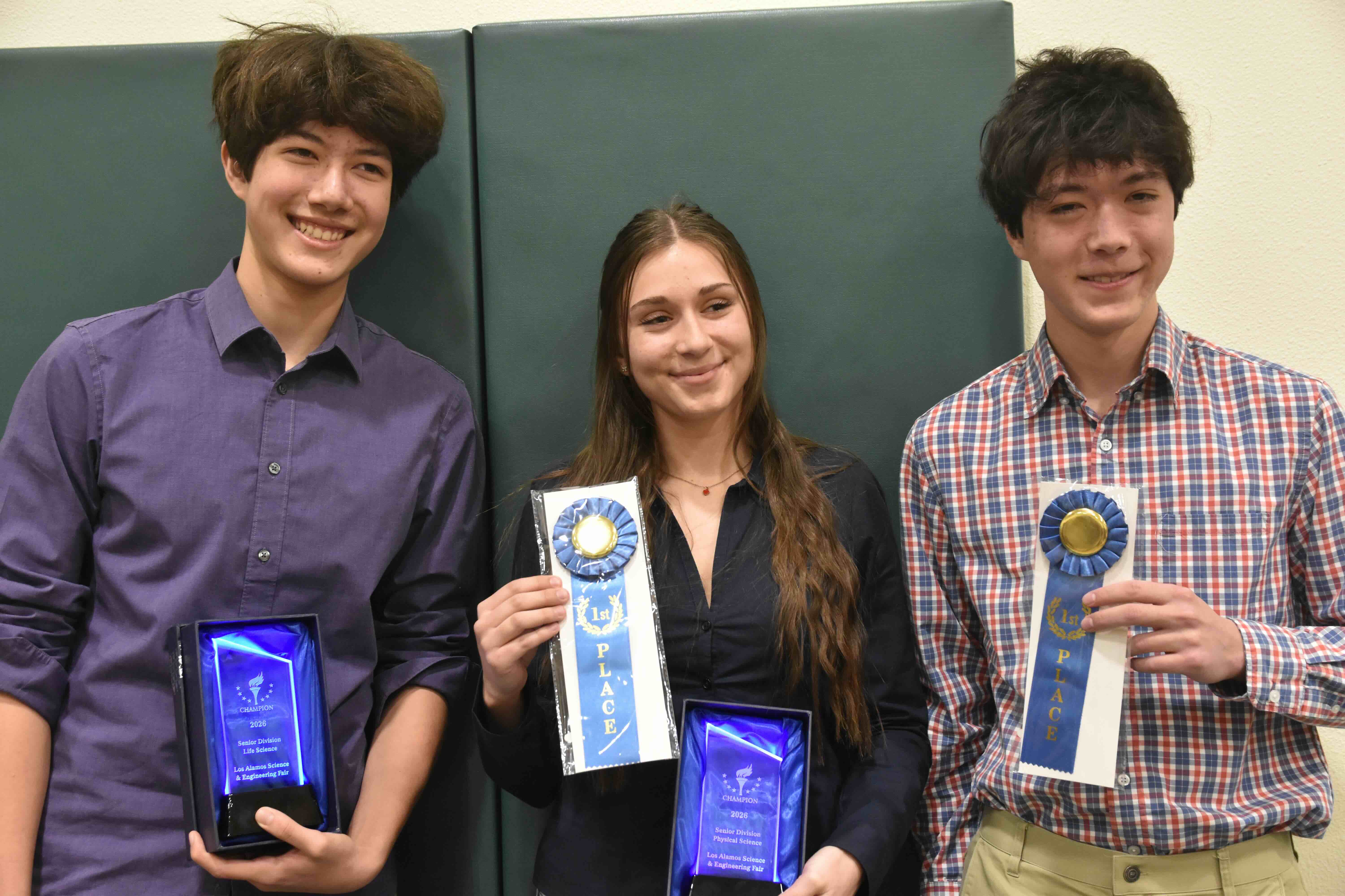Los Alamos High School students Linus Plohr, Lilia Viteva and Tate Plohr are among 52 LAPS students who qualified to participate in the Feb. 28 Northeastern New Mexico Regional Science Fair. Courtesy/LAPS