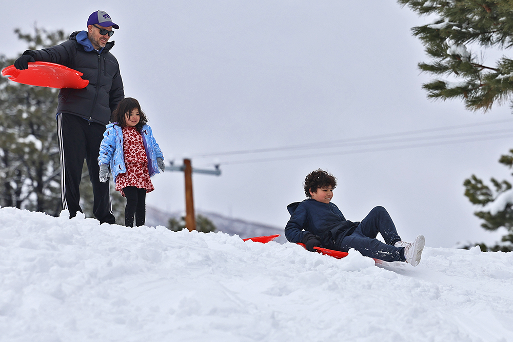A family is having a blast in the snow today at Urban Park. Photo by John McHale/ladailypost.com