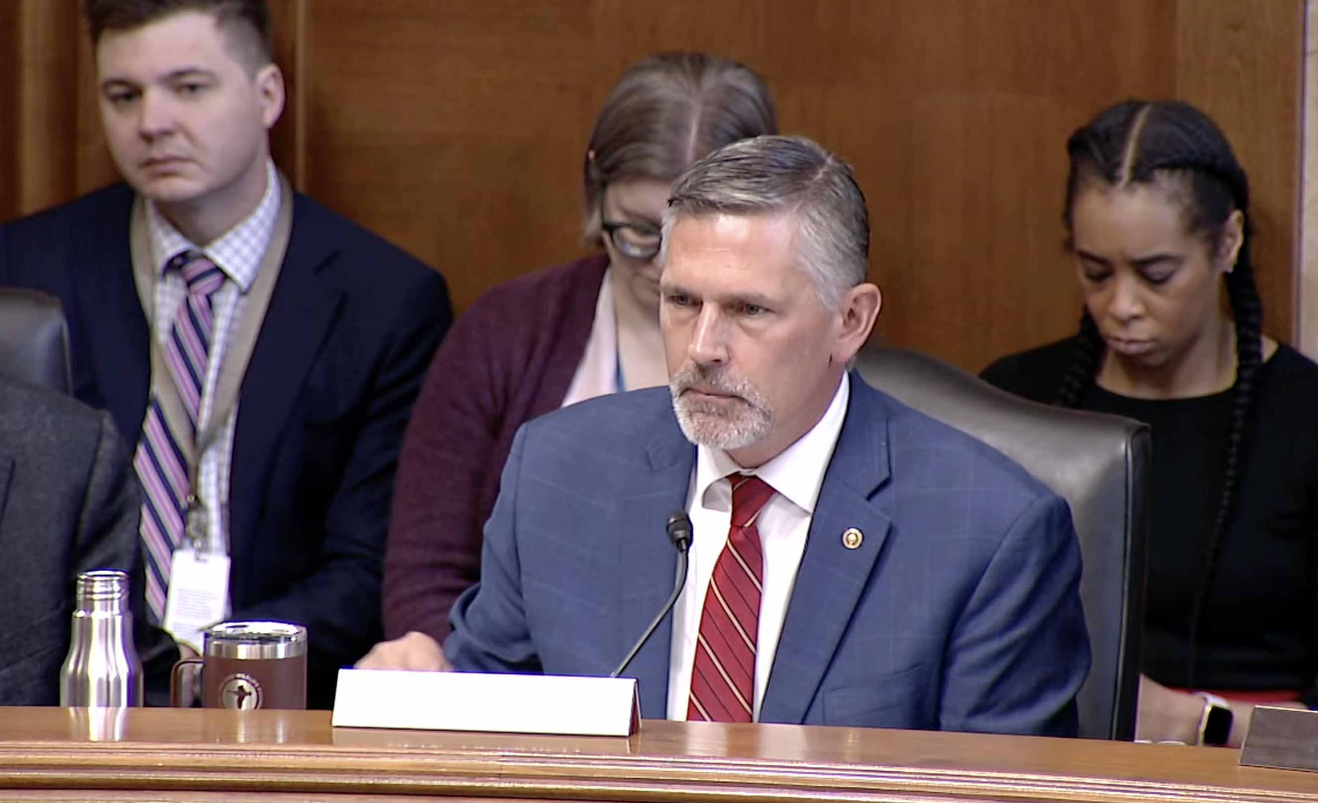 Ranking Member Heinrich (D-N.M.) questions former Congressman Steve Pearce on his stances on public lands during a hearing to consider his nomination to lead BLM, Feb. 25, 2026. Courtesy photo