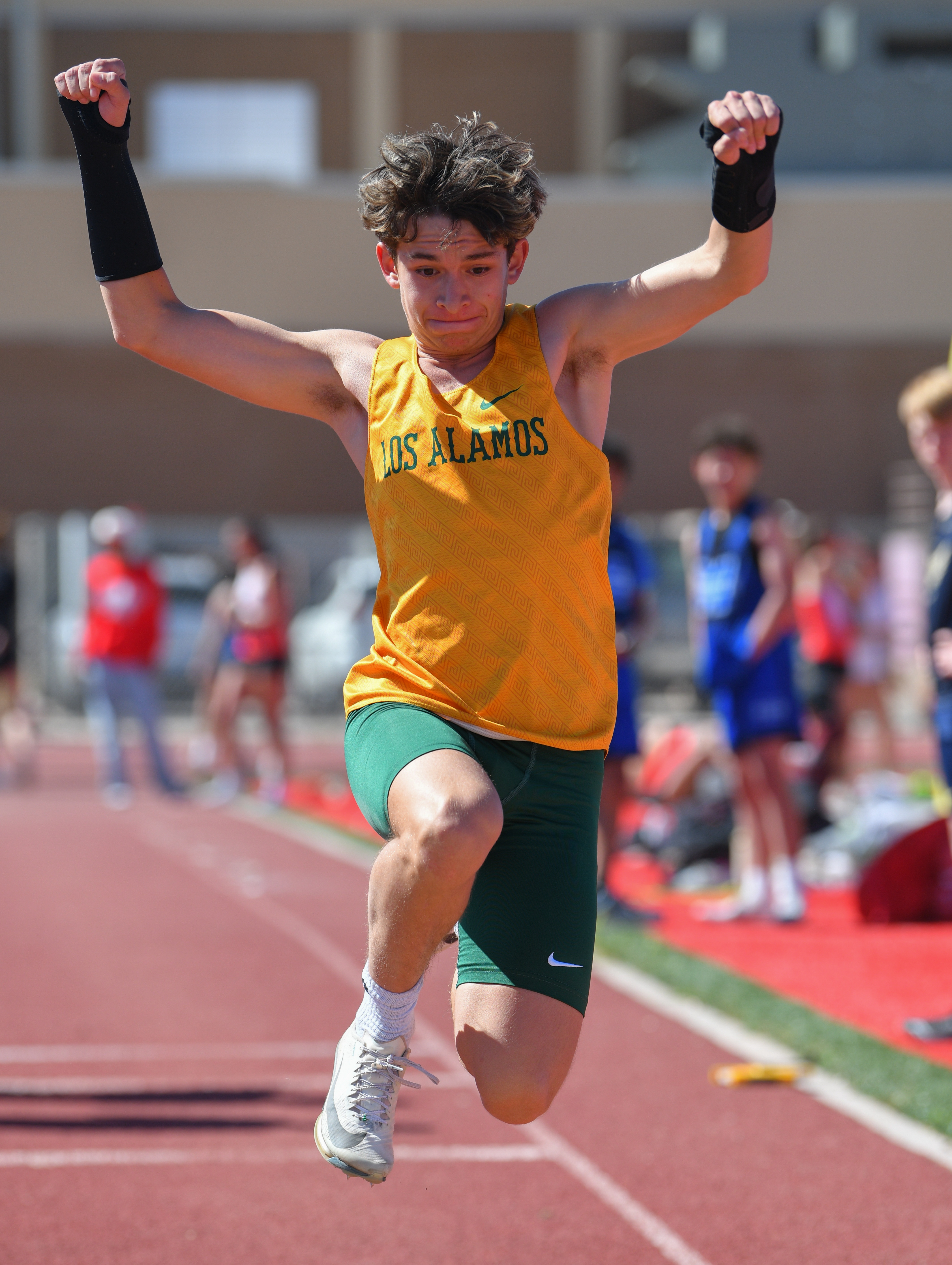 Rylee Gramer won the triple jump at Bernalillo with a leap of 40’10.5″. Photo by Blake Wood