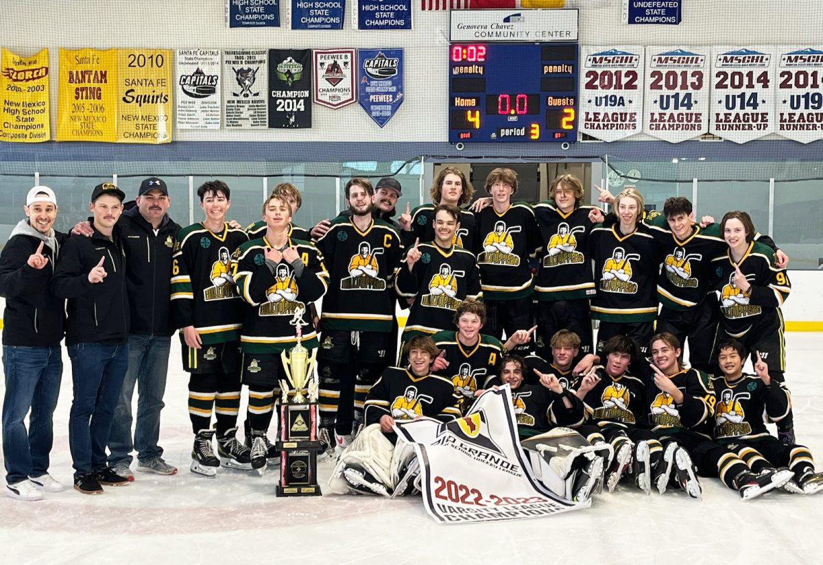 The Los Alamos Hilltopper Hockey Team closed out the end of year tournament in Santa Fe with a thrilling 4 to 2 victory over the Cibola Cougars. The final game of the season saw a couple of lead changes with the deciding goal coming in the third period, courtesy of senior Jake Sorenson. Sorenson had a hat trick on the afternoon and the game was sealed with an empty net goal by Wyatt Guffee.