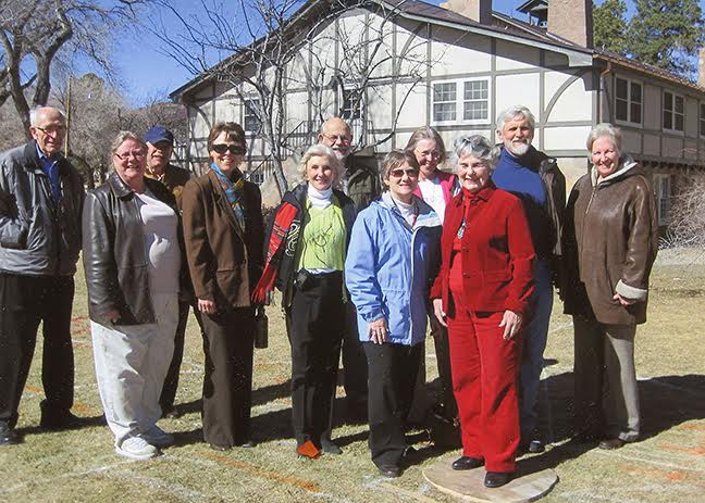 Photo from several years ago, from left, Oppenheimer Memorial Committee Representative Art Freed, County staff for Art in Public Places Board Stephani Johnson, Parks Manager and designer of the base for the statues Richard McIntyre, Bradbury Museum Director Linda Deck, sculptor Susanne Vertel, Fuller Lodge/Historic Districts Advisory Board Chair Gerry Strickfaden, Los Alamos Historical Museum Director Hedy Dunn, County staff for the FL/HDAB Nancy Cerutti, Chair of Historic Sculpture Master Plan and FL/HDAB member Nancy Bartlit, Past Chair of the FL/HDAB and Los Alamos Historical Society Treasurer Ron Wilkins and Los Alamos Chamber of Commerce Member Services Coordinator Katy Korkos.