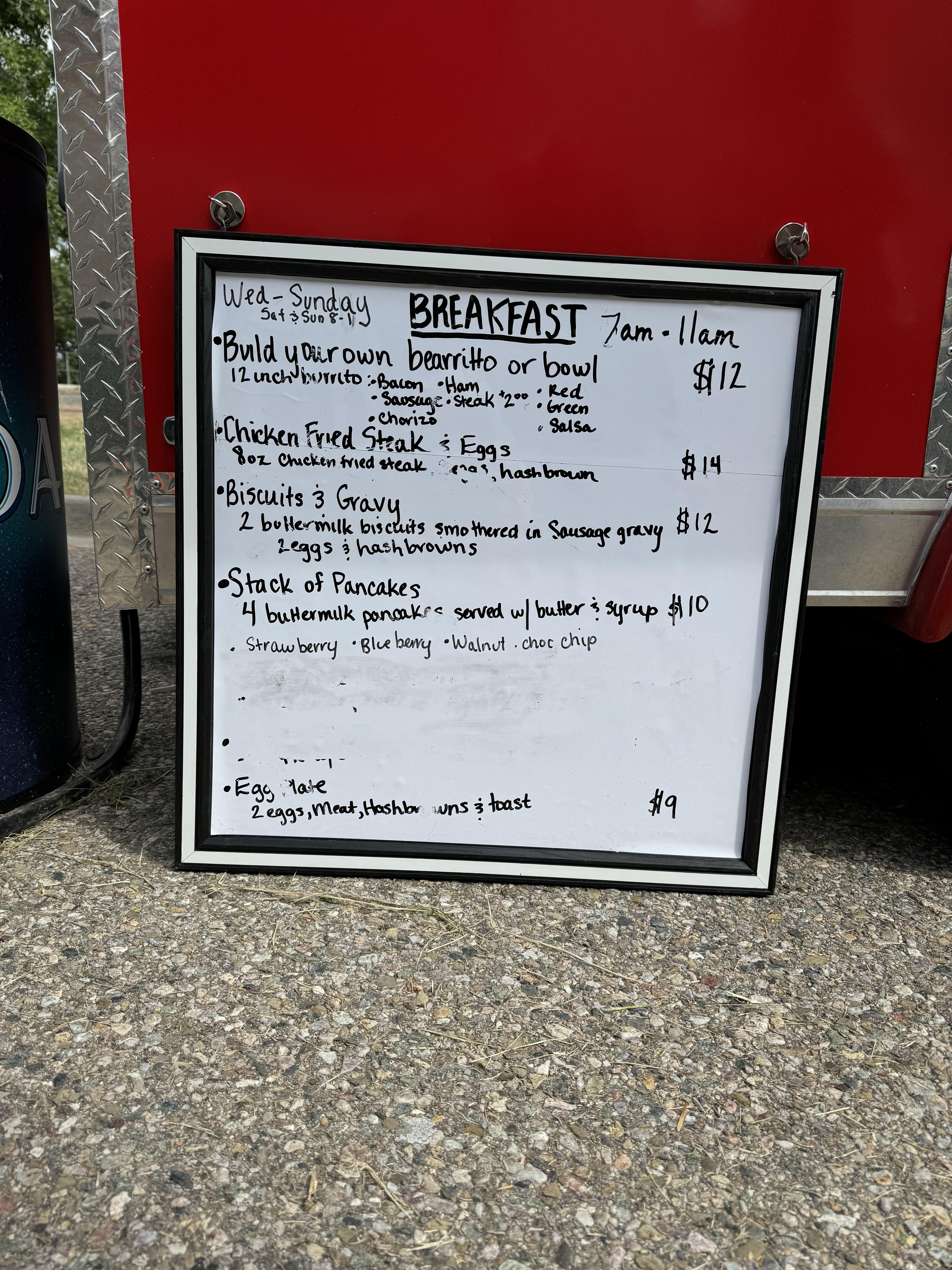 Customers can enjoy mouthwatering chicken sandwiches, classic hot dogs, hearty chili dogs, savory bratwursts and frito pie. Breakfasts include burritos and bowls, pancakes, biscuits and gravy, and chicken fried steak and eggs.