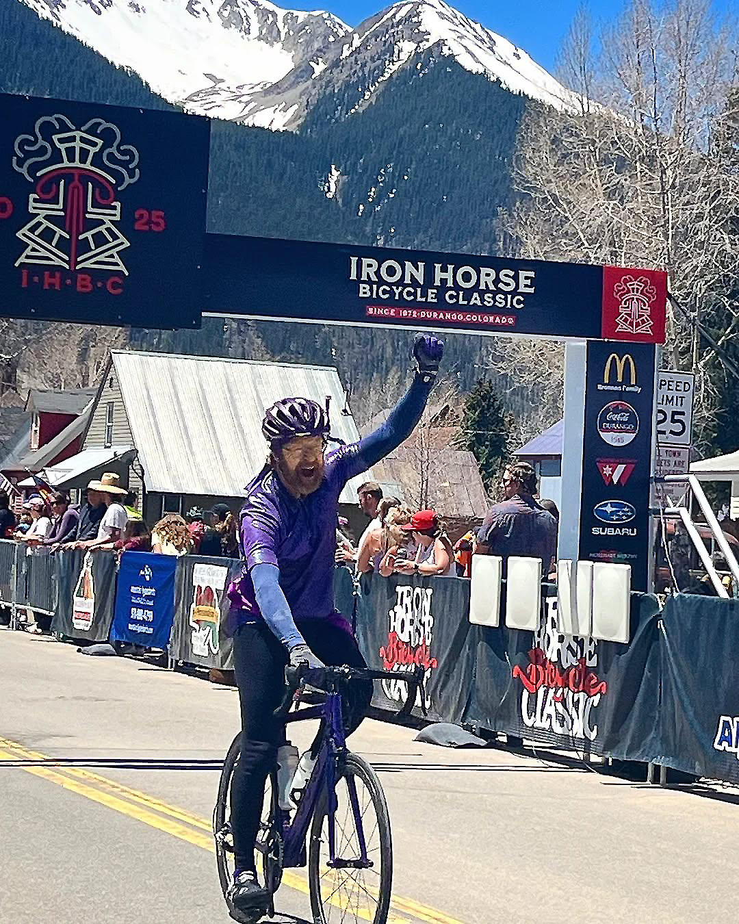 On May 24, 2025, Jonathan Dowell of Los Alamos completed his 15th ride in the Iron Horse Bicycle Classic. This grueling ride from Durango to Silverton, Colo., is nominally 50 miles, climbing 6,000 vertical feet across Coal Bank and Molas Passes with two breathtaking descents. This year’s effort also marks Dowell’s 50th year living with type-1 diabetes mellitus. ‘I want to inspire people to succeed regardless of whatever challenges they face,’ Dowell said. ‘I also want to thank Dr. Bernstein of Regional Endocrinology Associates for giving me technology and expertise to live with diabetes, Dr. Marvil of Taos Orthopaedic Institute for the miraculous total hip arthroplasty last September, and my wife, Tessa, who has made everything possible for 35 years.’ Photo by Tessa Dowell