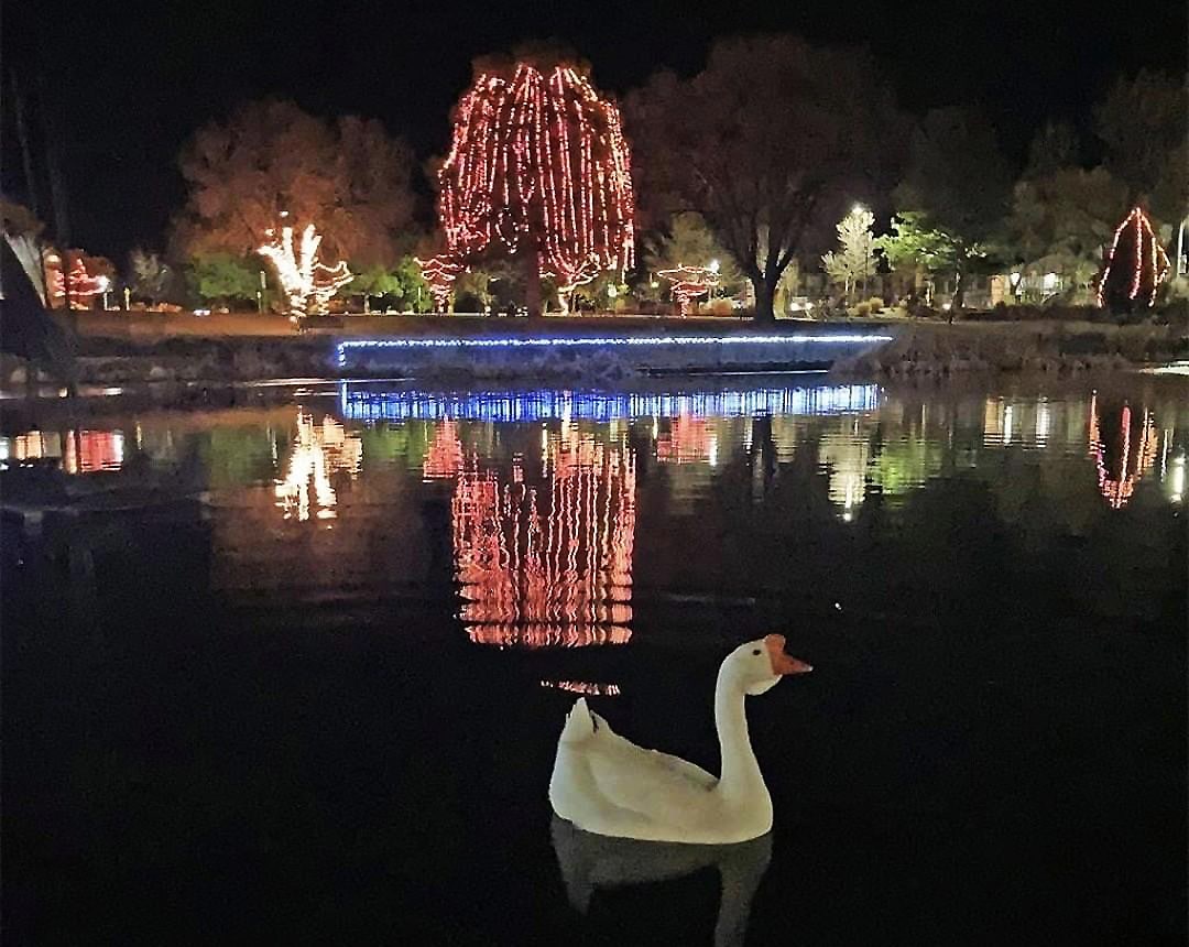 Beloved community goose Homer floatly peacefully across Ashley Pond during a past Christmas season. Homer passed away over the weekend, and Greg and Karen Kendall who befriended him over the years, remember him today sharing some of their favorites photos. Courtesy/The Kendalls