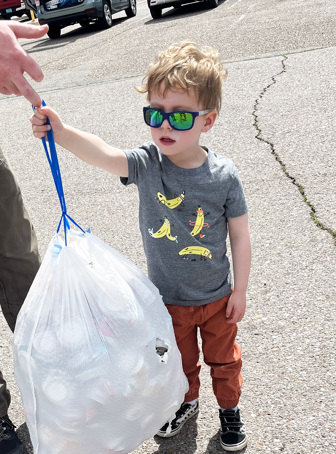 A young collector receives bags of aluminum cans from the community for recycling during a previous event. Courtesy/Kiwanis