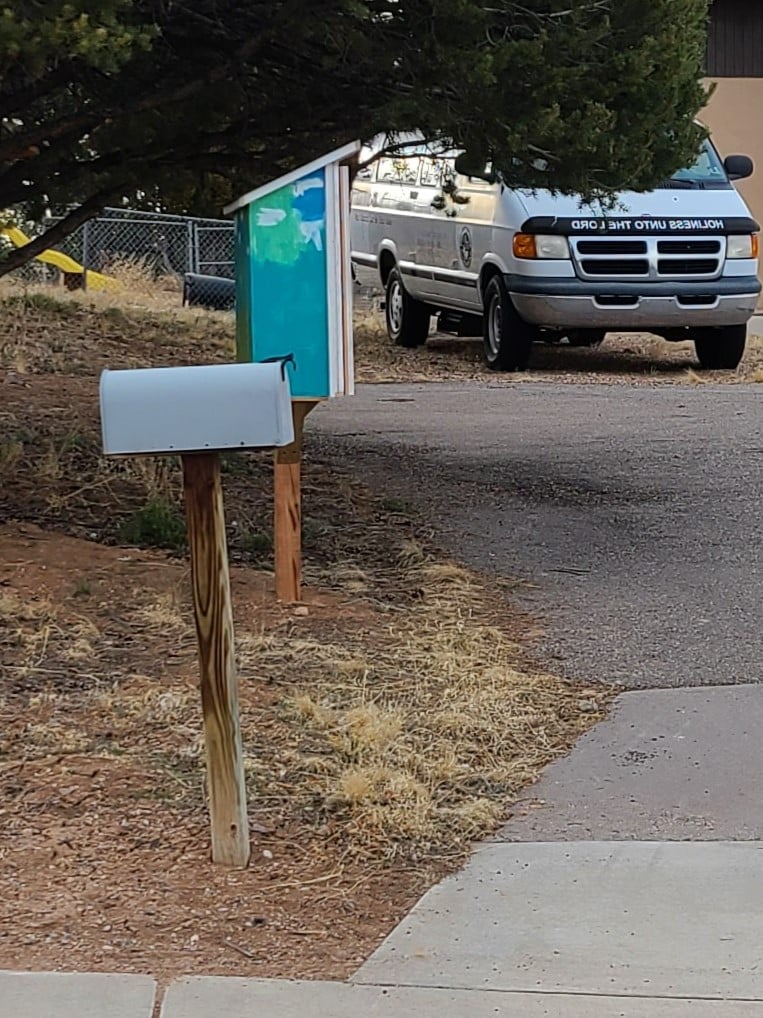 This Little Free Pantry is now located near the mailbox at La Vista Church of the Nazarene at 15 Grand Canyon Dr., on the corner of N.M. 4 and Grand Canyon.