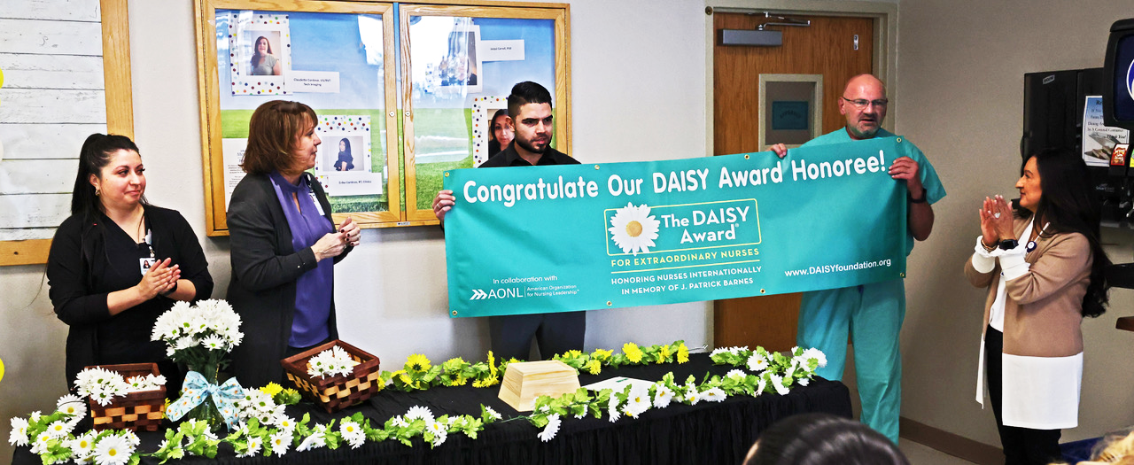 The certificate reads: “In deep appreciation of all you do, who you are, and the incredibly meaningful difference you make in the lives of so many people.” Honorees also receive a DAISY Award pin and a beautiful and meaningful sculpture called “A Healer’s Touch”, hand-carved by artists of the Shona Tribe in Zimbabwe.