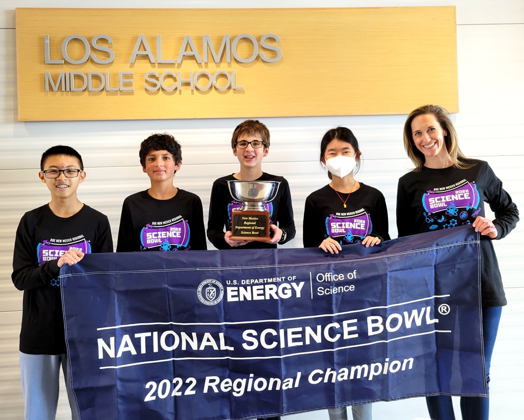 The Los Alamos Middle School Science Bowl Team of Andrew Bacrania, Jasper Carpenter, John Kang and Alyssa Sun won the regional Science Bowl and has advanced to the national level.