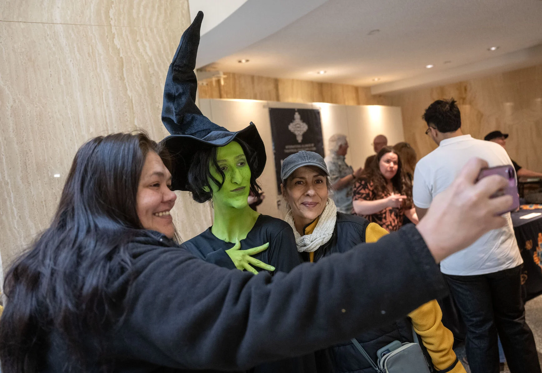 Sid Linkletter, dressed as the Wicked Witch of the West from The Wizard of Oz, takes a selfie with fans as she walks the halls of the Roundhouse Thursday, March 13, 2025. Photo by Michael G. Seamans/The New Mexican