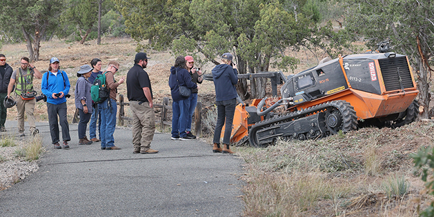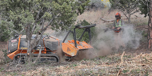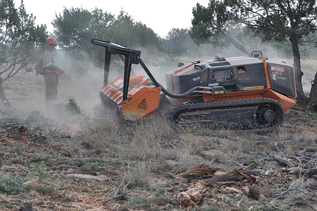 The remote operated Mastication machine on the job Tuesday on Canyon Rim Trail. Photo by John McHaleladailypost.com