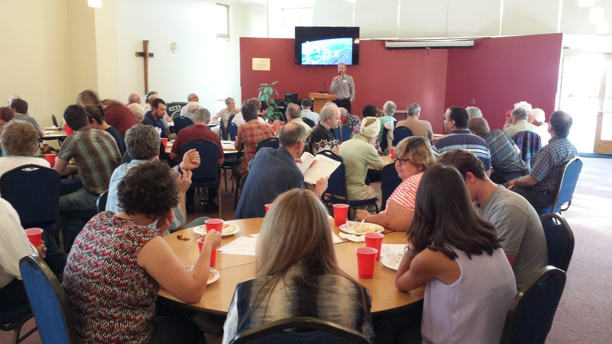 Nels Hoffman giving a Faith and Science Forum talk in Kelly Hall at Trinity on the Hill Church. Courtesy/LAFSF