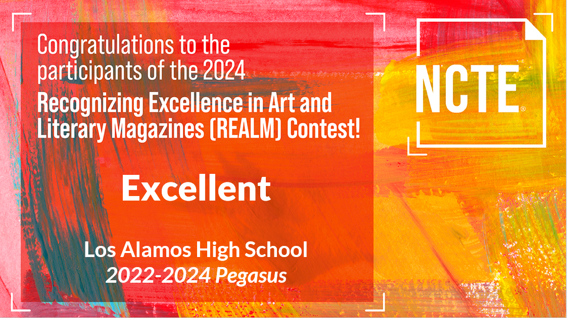 The Los Alamos High School 2022-2024 literary magazine, Pegasus, has been recognized with an Excellent distinction in the Recognizing Excellence in Art and Literary magazines (REALM) contest.