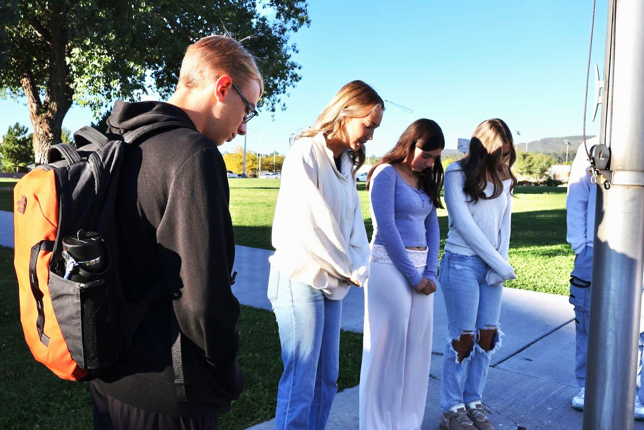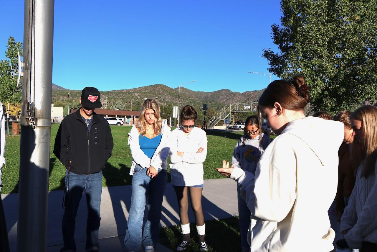 Los Alamos High School students gathered to pray around the flagpole before school this morning, Sept. 24, for the annual, nationwide, student-led See You at the Pole event. Students prayed for their school, town, and country, particularly for unification. Courtesy/Courtney Richardson