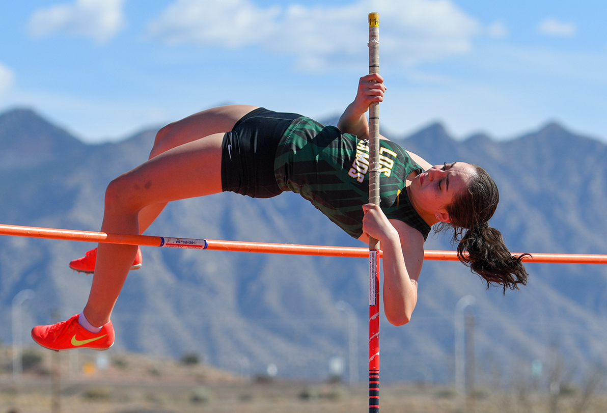 Girls achieving state qualifying marks included Evangelina Gutierrez in the 100 m (12.95), Colette Bibeault in the 400 m (60.11), Ensley Jorgenson in the 800 m (2:25.92), Colette Bibeault, Dani Trellue, and Raina Passalacqua in the 100 m hurdles (15.13, 16.20, and 16.92, respectively), Iris Purtzer, Raina Passalacqua, and Colette Bibeault in the high jump (5′, 4′ 10″, and 4′ 10″, respectively), Allie Holland and Jenna Montoya in the long jump (17′ 5″ and 16′ 9″, respectively), Colette Bibeault and Dani Trellue in the pole vault (11′ 9″ and 10′, respectively), and Sarah Martis in the discus (105′ 5″).