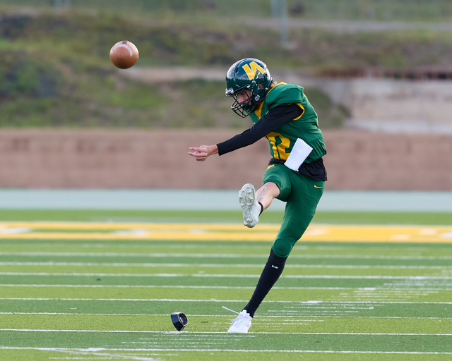 Hayden Walkins kicks off in the second quarter. Photo by Nate Limback/ladailypost.com