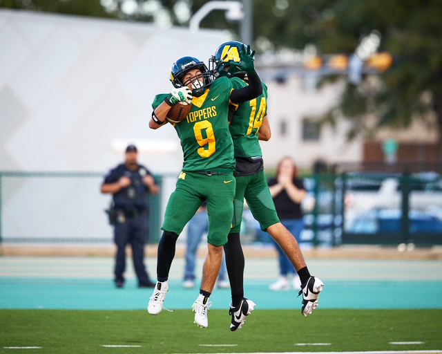 Carlo Baca celebrates his touchdown reception with Dylan Baca. Photo by Nate Limback/ladailypost.com