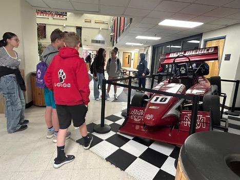 Scarlett Vialpando, Daniel Yampolsky, Bella Herrera and Karlee Dowdy check out the Formula SAE car at the UNM College of Engineering. Courtesy photo