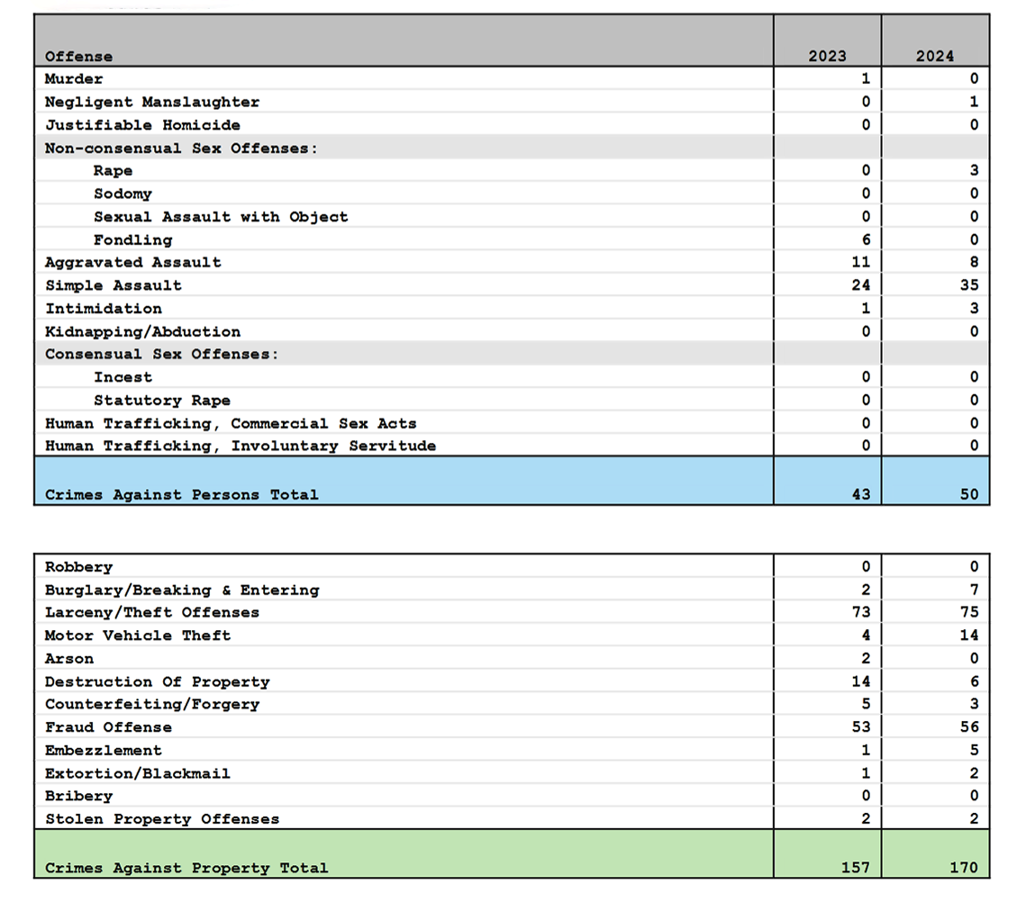 The full report can be accessed on the Police Department website by selecting Crime Statistics for 2024 on the main page here.