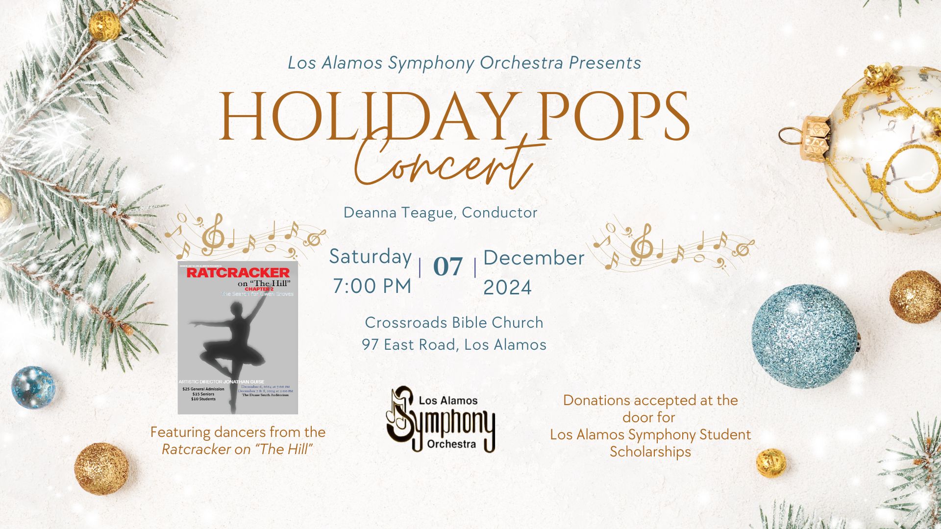 The Los Alamos Symphony Orchestra (LASO) will present its annual Holiday Concert, 7 p.m. Saturday, Dec. 7 at Crossroads Bible Church.