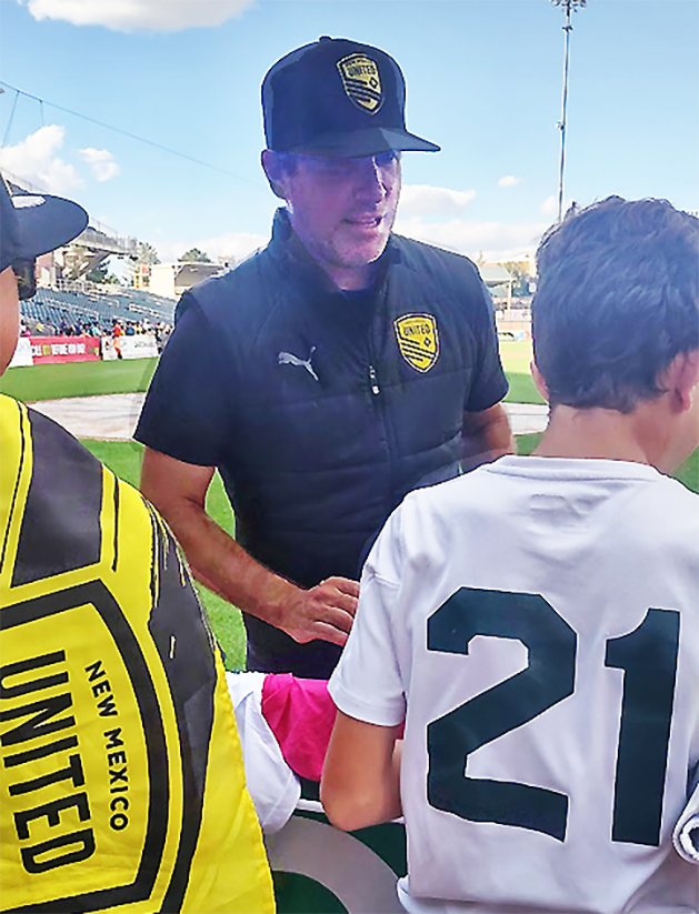 NM United Coach Eric Quill, imparting his coaching wisdom on the kids. Courtesy/LAYSL