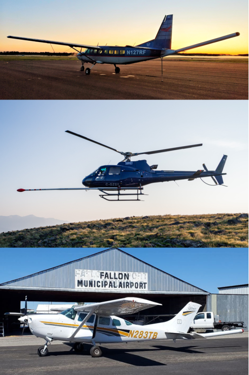 The Cessna 208 Grand Caravan aircraft, Eurocopter AStar-350 B3e helicopter, and Cessna Turbo 206 aircraft used by NV5, Precision GeoSurveys, and Edcon-PRJ, respectively, for surveying. Courtesy/photo