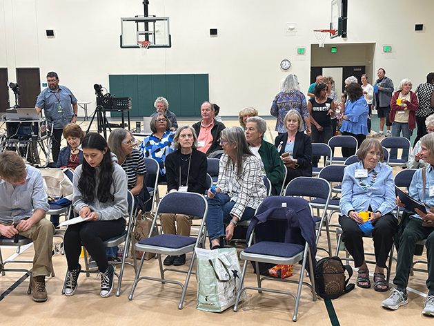 Community members gather for the League of Women Voters Candidates Forum early Monday evening at Pinon Elementary School in White Rock. Photo by Kirsten Laskey/ladailypost.com