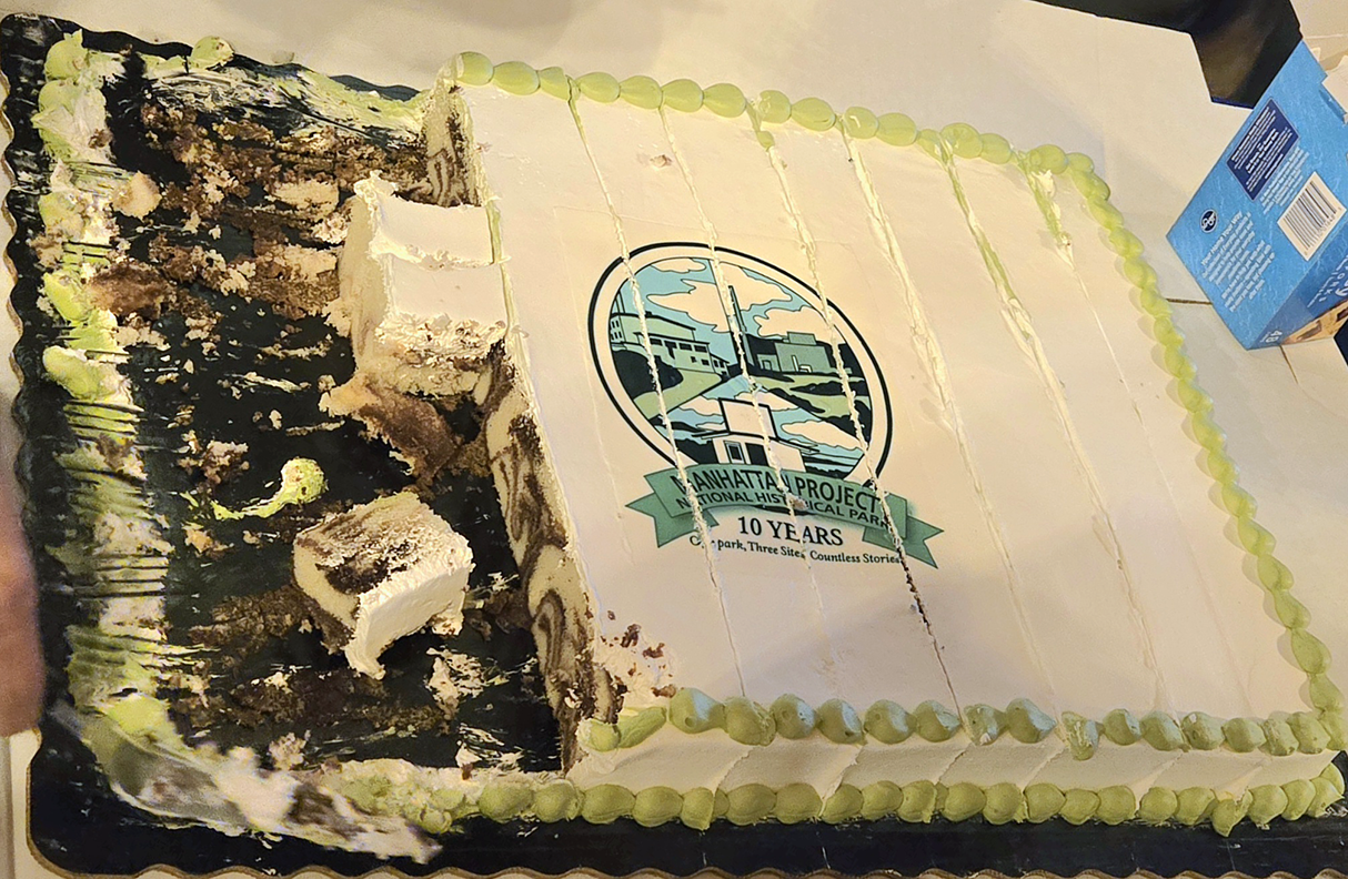 Attendees celebrate with an anniversary cake marking 10 years of the Manhattan Project National Historical Park. Photo by Mark MacInnes/ladailypost.com