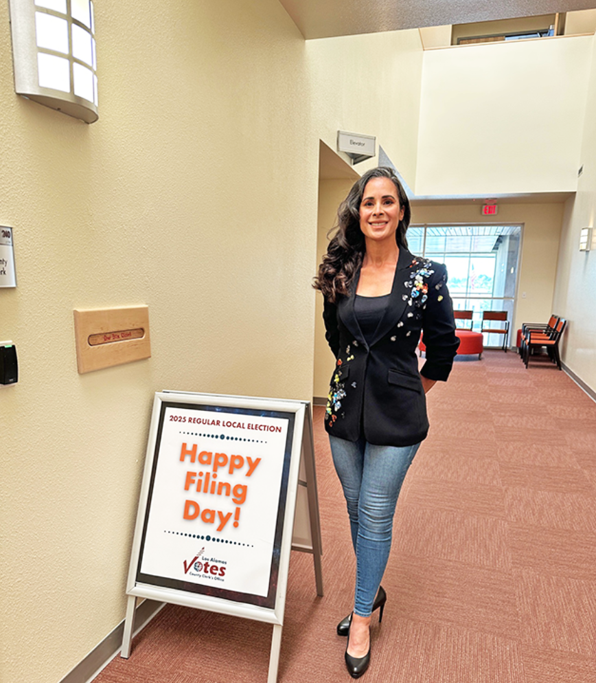 Margie Serrato filed to represent District 1 on the Los Alamos Public Schools Board of Education during filing day this morning in the Los Alamos County Clerk’s office. Serrato said she would like to serve on the school board because, ‘I believe we all can, and must, be the change we want to see in the world and that includes our local school board’. Photo by Kirsten Laskey/ladailypost.com