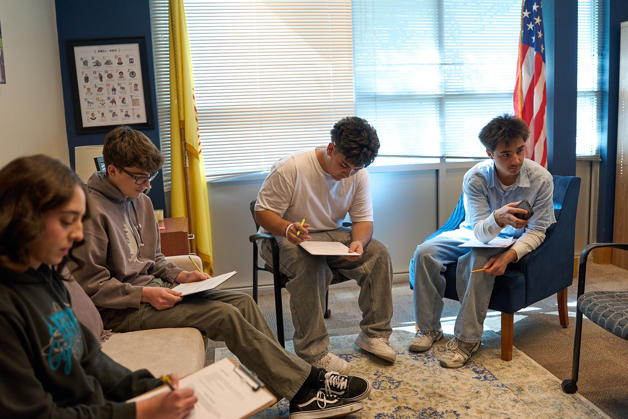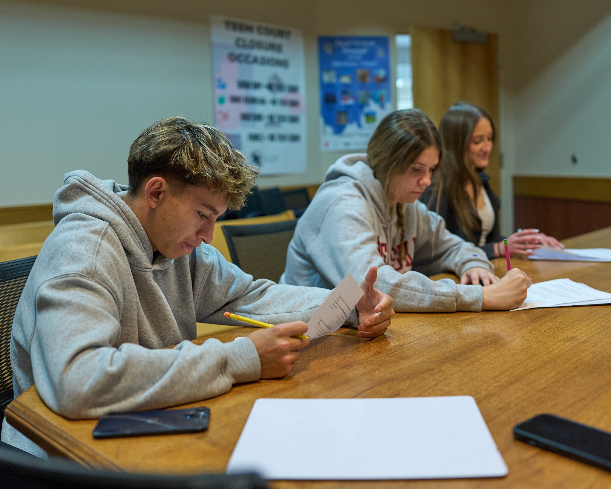 Los Alamos High School students from English Teacher Lori Thompson’s Sports Lit class conduct interviews recently at the Justice Center. Photo by Nate Limback/ladailypost.com