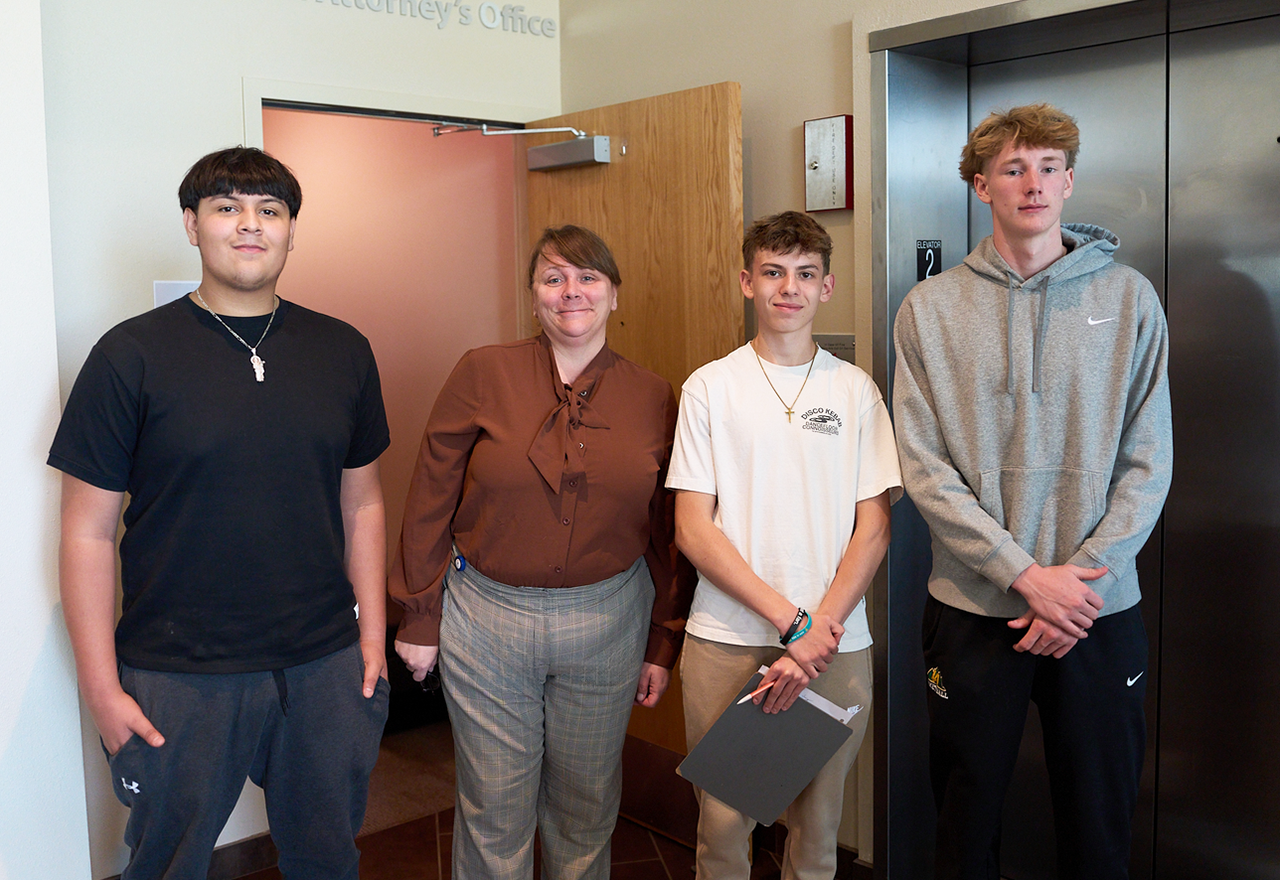 Los Alamos High School students from English Teacher Lori Thompson’s Sports Lit class with Assistant District Attorney Elizabeth Counce during interviews they conducted in early November at the Justice Center. Photo by Nate Limback/ladailypost.com