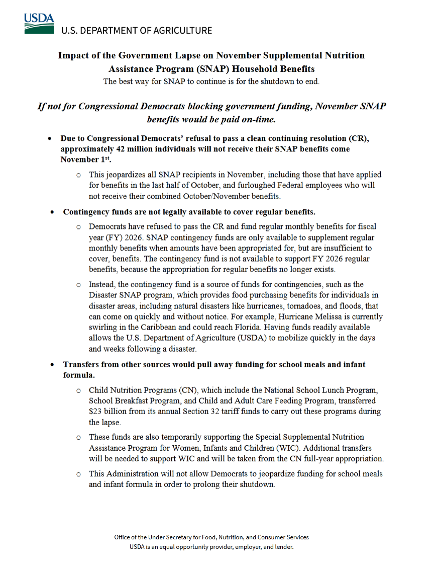 The federal government’s refusal to pay for SNAP benefits in November is unconscionable — and the absurdity doesn’t end there. For New Mexico, that’s 460,000 people in our state — 21 percent of our population, the highest participation rate in the nation. The federal government has abandoned its responsibility to feed families.