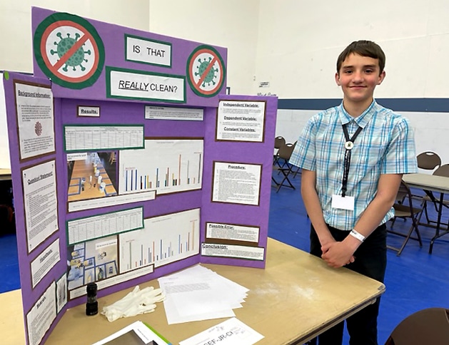 Los Alamos Middle School 7th grade student Noah Bane examined nine household cleaners in a quest to determine which ones really work. Courtesy/NMT