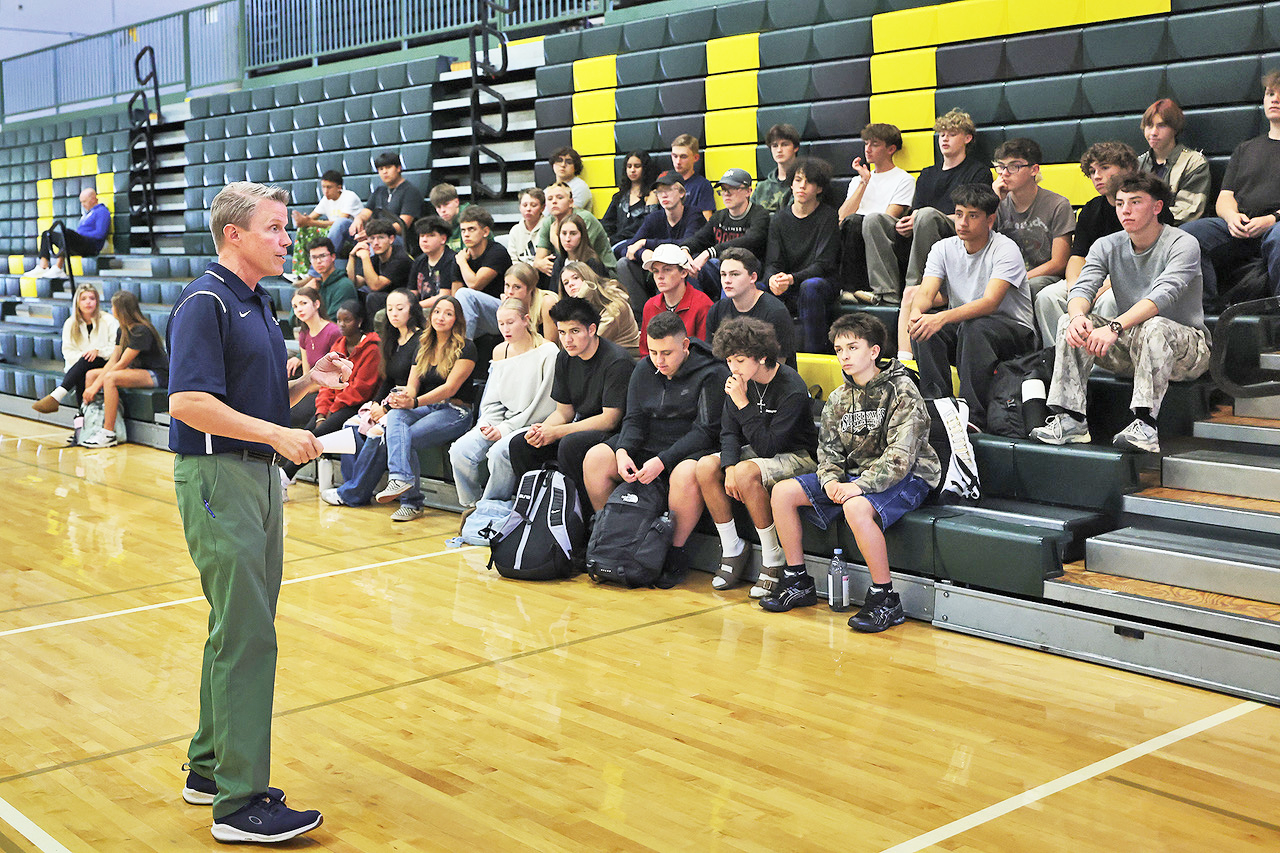 New Mexico Activities Association (NMAA) Sports Information Director JP Murrieta speaking to teacher Lori Thompson’s Sports Lit students Thursday at Los Alamos High School. Photo By John McHale/ladailypost.com