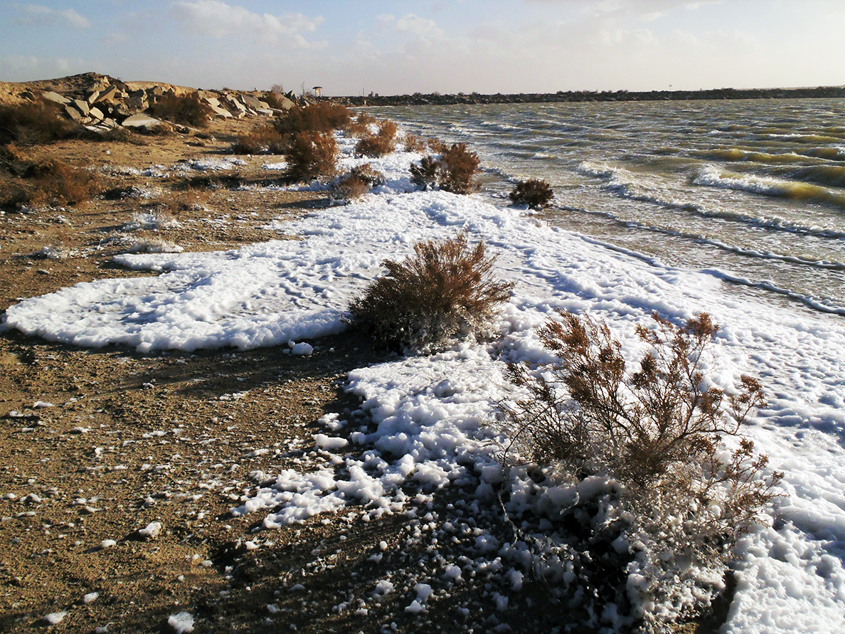 PFAS-laden foams on the shores of Lake Holloman near Alamogordo and adjacent to White Sands National Park. Courtesy/NMED