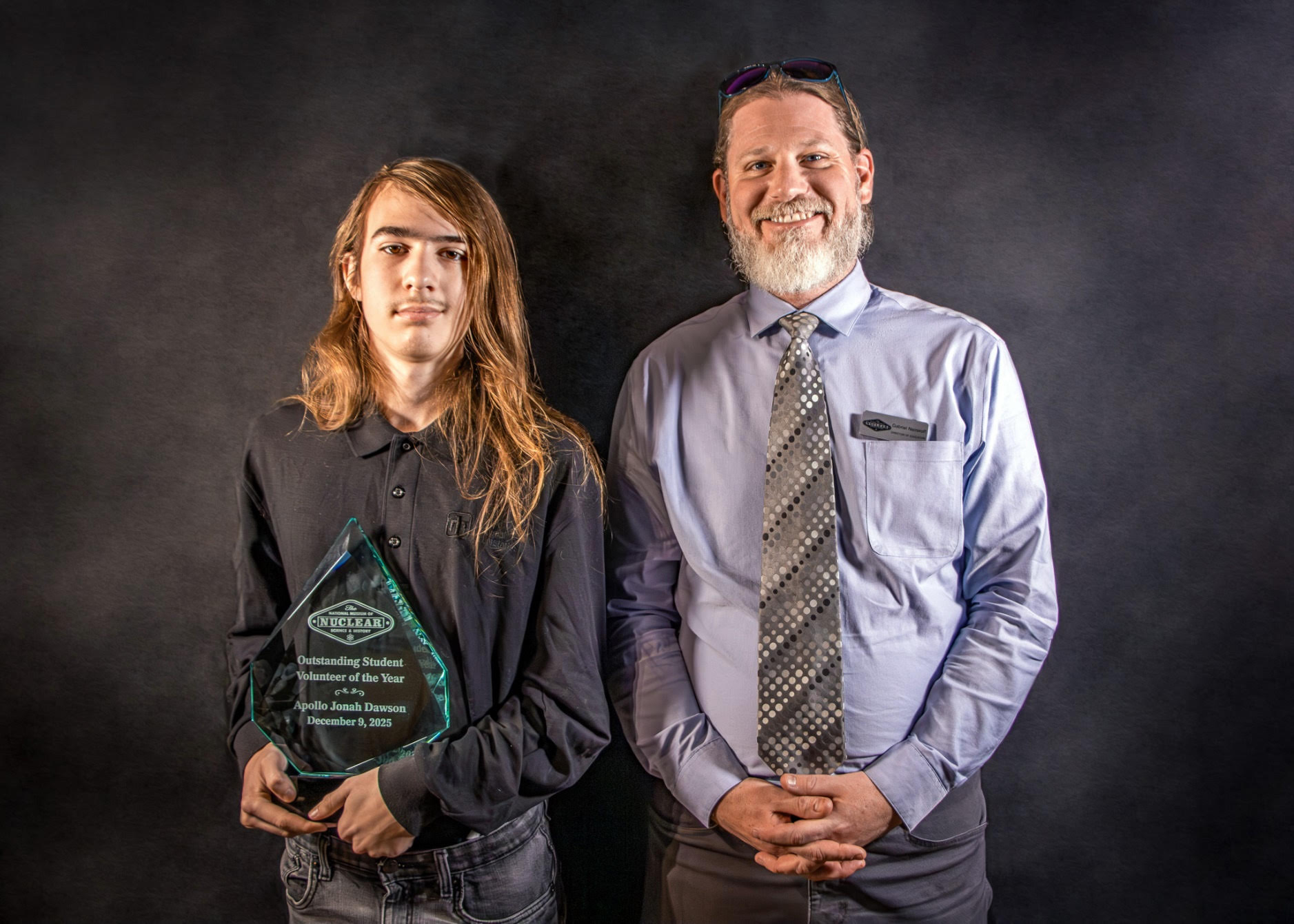 ALBUQUERQUE — The National Museum of Nuclear Science & History is proud to announce Steve Moskal as the recipient of the prestigious Maydew-Jeblick Volunteer Award, Jonah Dawson as the winner of the Outstanding Student Volunteer Award, and Brad Irwin as the inaugural recipient of the Rising Star Volunteer Award. These awards were presented recently at the Museum’s annual Volunteer Holiday Party, an event that honors the dedication and contributions of the Museum’s more than 40 volunteers.