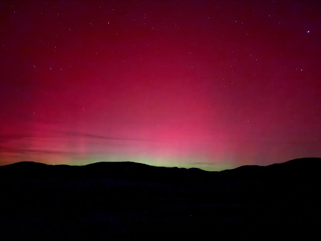 Tuesday’s Northern lights silhouette the Valles Caldera National Preserve ridgeline. Photo by Moss Halladay
