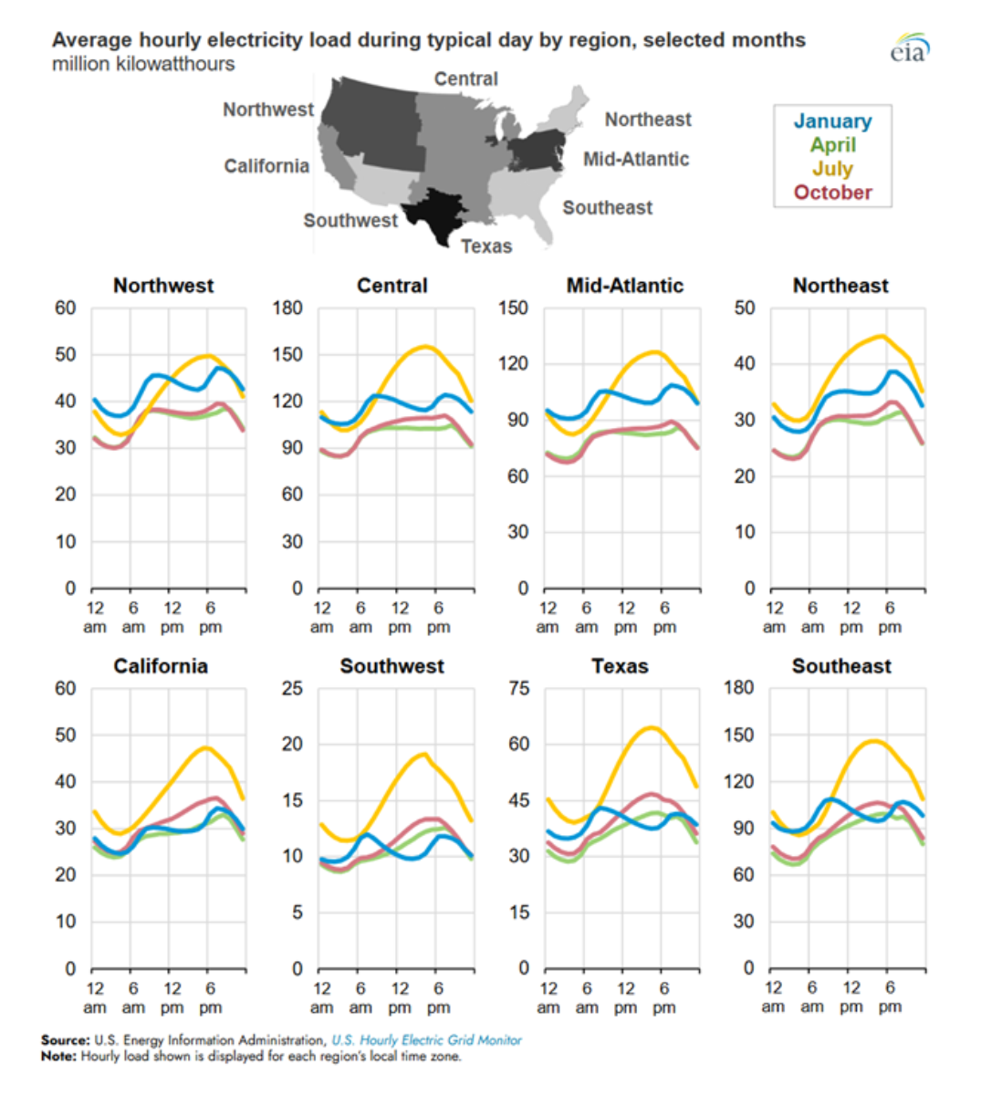 Figure 1: Average Hourly Electricity Load by Region – US EIA