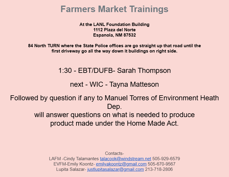 Farmers Market Training For WIC/DUFB & EBT Tomorrow