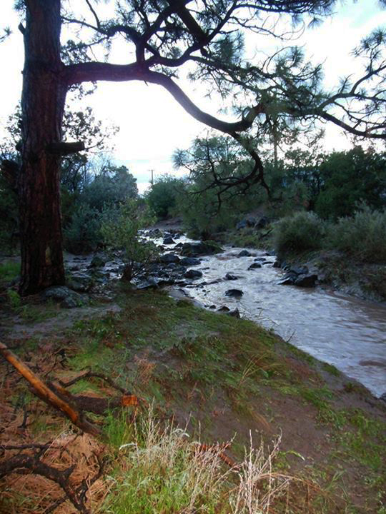 Rain pouring down during today’s severe storm formed a river in White Rock now dubbed the ‘Rio del Buey.’ Photo by Katy Korkos