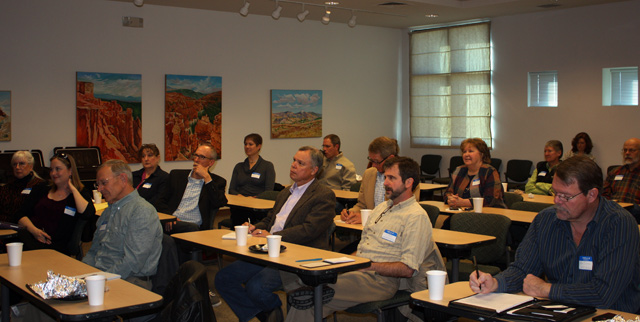 Attendees listen to County Administrator Harry Burgess discuss the ‘State of the County’ during Thursday’s Chamber of Commerce Business Breakfast at UNM-LA. Photo by Bonnie J. Gordon/ladailypost.com