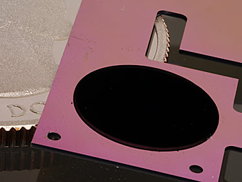 The circular patch of carbon nanotubes on a pink silicon backing is one component of NIST’s new cryogenic radiometer, shown with a quarter for scale. Gold coating and metal wiring has yet to be added to the chip. The radiometer will simplify and lower the cost of disseminating measurements of laser power. Photo by Tomlin/NIST