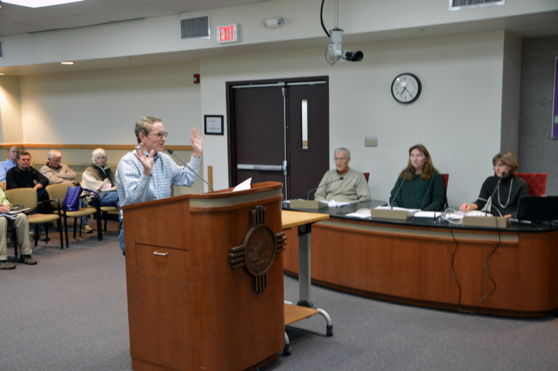 Los Alamos Planning and Zoning Commissioners from left, Chairman Fred Roach at podium, Pete Sheehey, Avivah Smith-Nelson and Anne Nobile discuss the work of the commission and call for members of the public to contact them with interest to serve on this commission as two positions are coming available. Council Chair Sharon Stover commended the commission for its fine work over the past year. Photo by Carol Read More