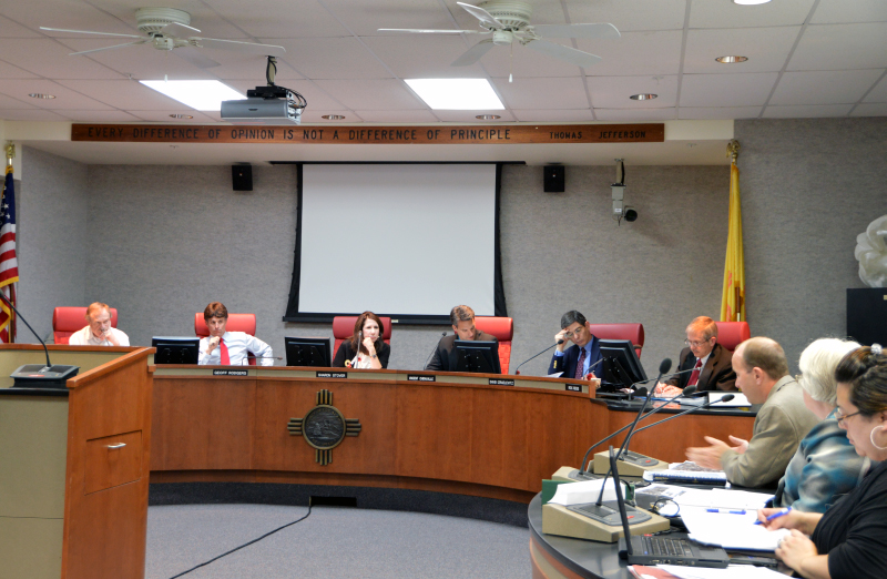 Councilors vote 6-1 to direct staff to proceed with the phased N.M. 502 Improvements Project, with Alternative D, expressing the need to strike the best possible balance in the timeframe available to ensure state and federal funding is received. Councilor Vincent Chiravalle voted against the measure. From left, Councilor Fran Berting, Councilor Mike Wismer, Council Vice Chair Geoff Rodgers, Council Chair Sharon Stover, Councilor Vincent Chiravalle, Councilor David Izraelevitz and Councilor Rick Reiss. Photo by Carol A. Clark/ladailypost.com Read More