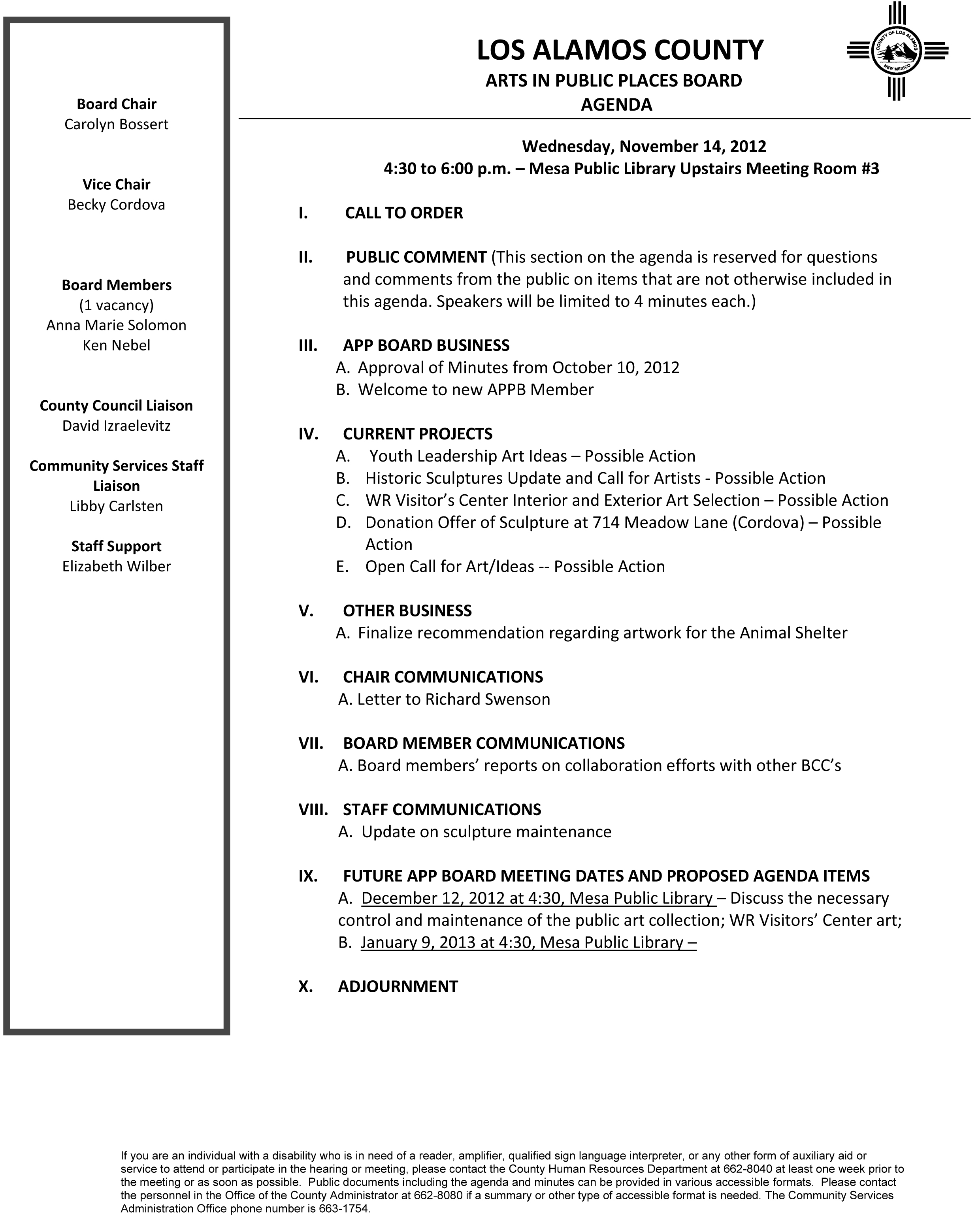 Arts In Public Places Board Meets Nov. 14