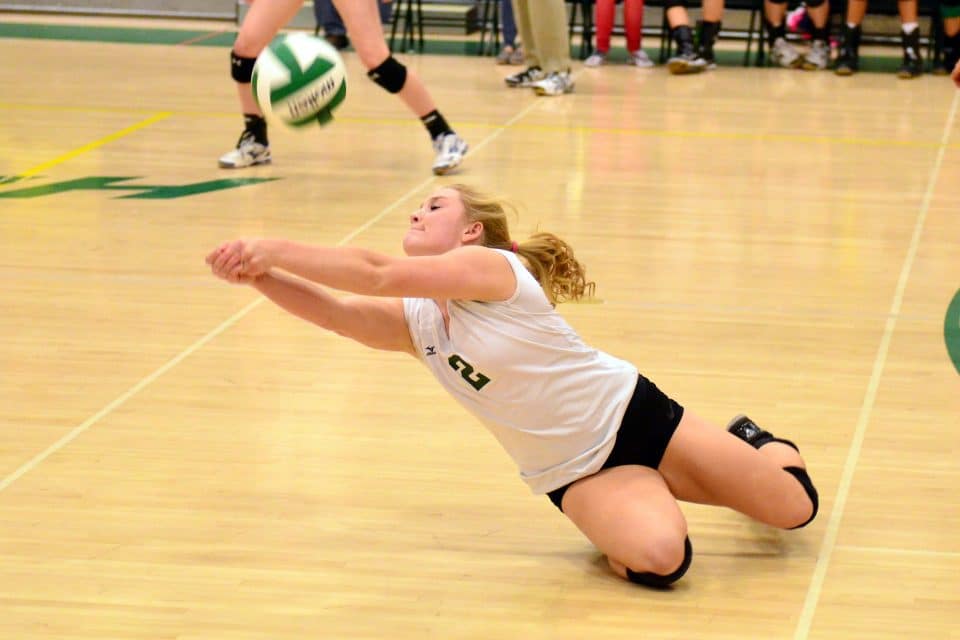 Morgan Schake with dig and pass. Photo by Alan Kirk