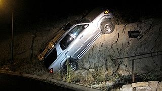 An unoccupied Toyota Sequoia rolled off a cliff from the driveway of a home on Solana in Los Alamos at 7:45 p.m. Saturday, Oct. 27. No one was injured by the incident. It took the driver of a wrecker about two hours to position the vehicle for removal. “Amazingly, the car was driven away from the scene,” a witness told the Los Alamos Daily Post. Photo by Nina Thayer