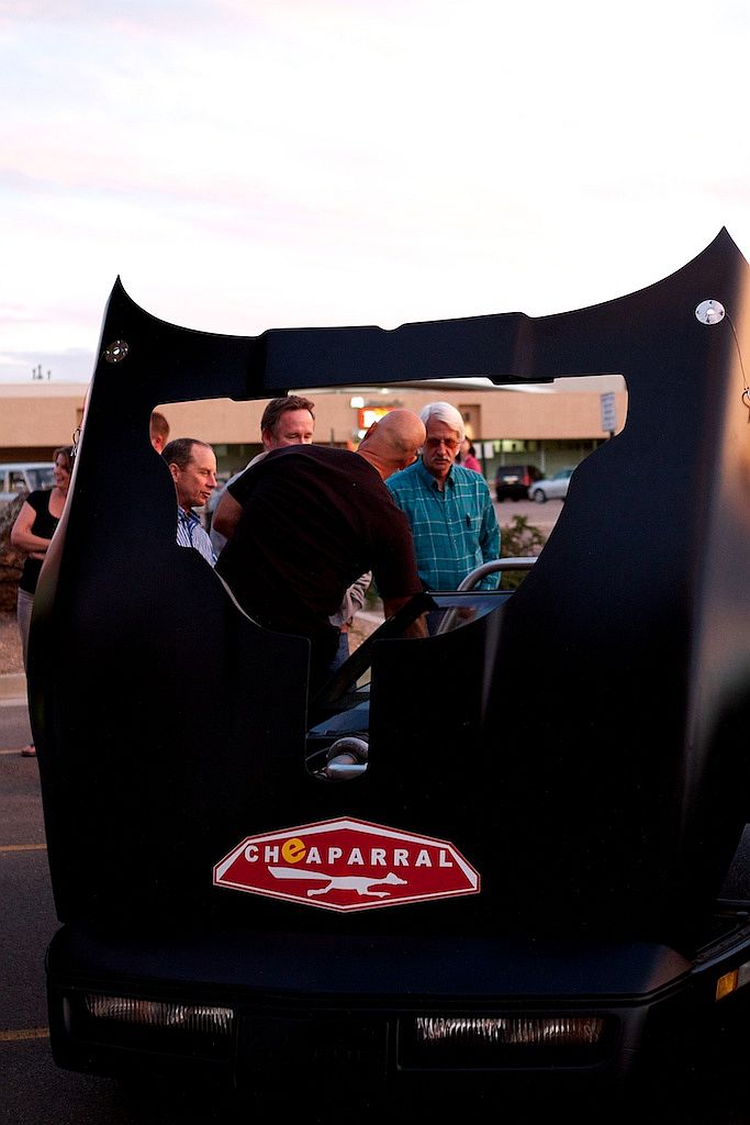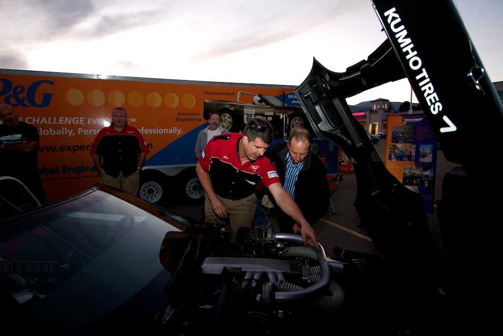 Engineers from Proctor & Gamble give a preview of the CHeAPARRAL 2J-2 Corvette Friday evening as part of today‘s Next Big Idea festival. The Corvette will be on display 11 a.m. to 3 p.m. today in the Mesa Public Library parking lot during. Photo by Sal Zapien/ladailypost.com