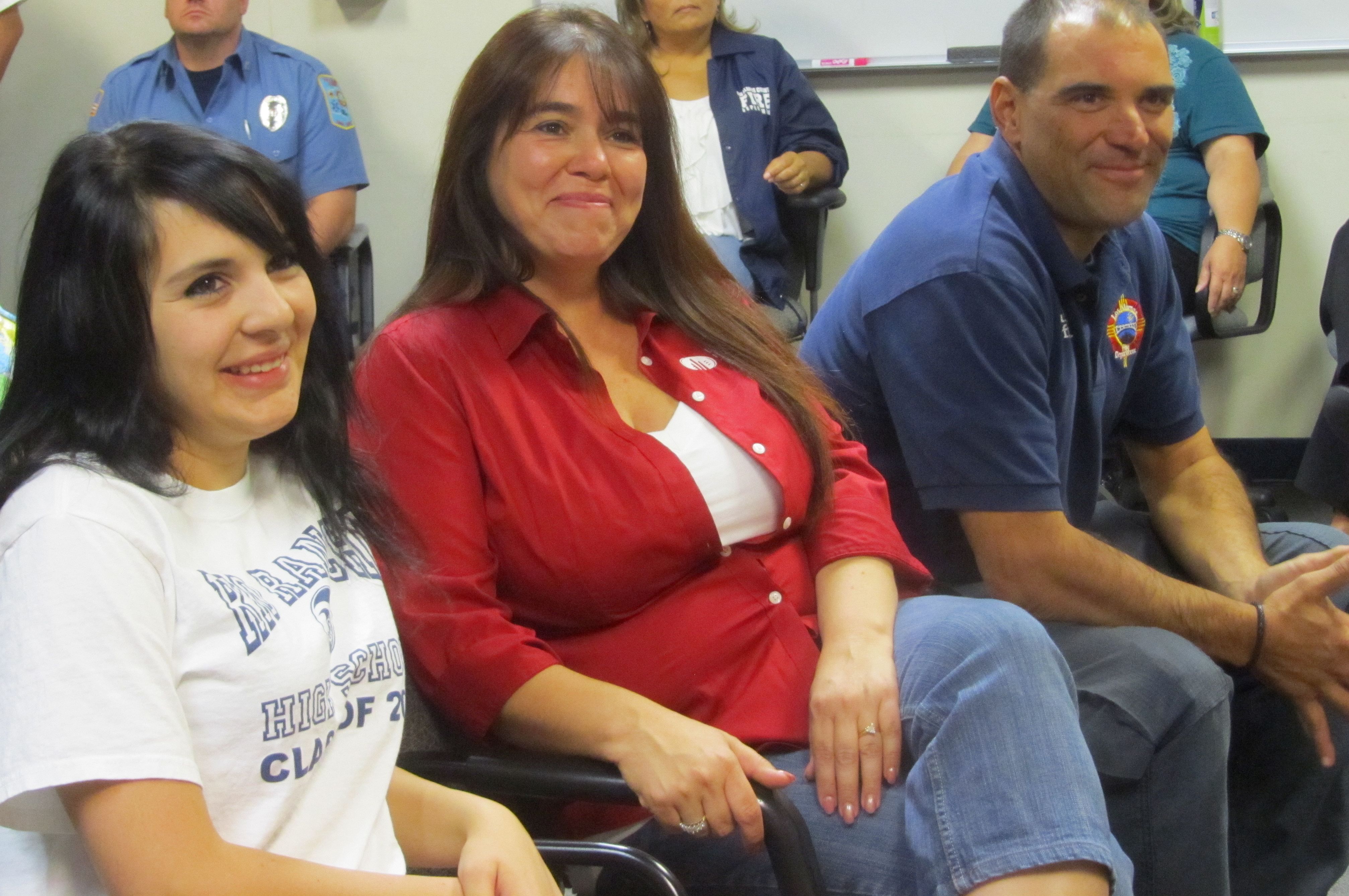 Lt. Larry Romero and from left, his daughter Miranda and his wife Melissa listen as Fire Chief Troy Hughes and Deputy Fire Chief Justin Grider speak of Romero’s important contributions to the Los Alamos Fire Department during his 22 years of service. Photo Read More