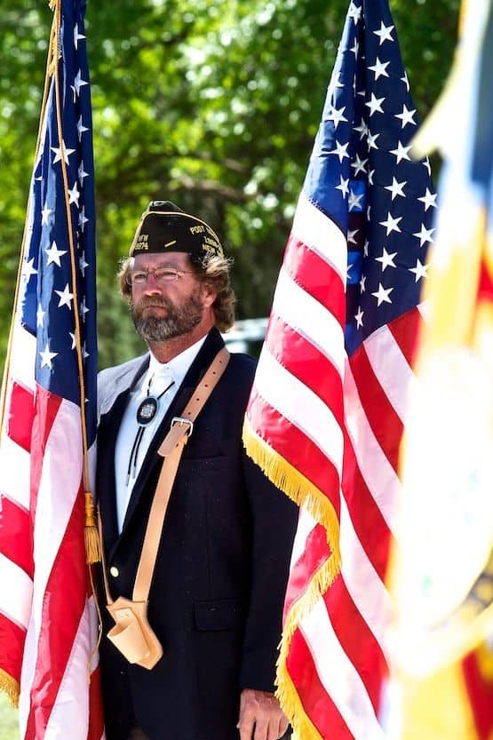 James Hay, Commission for the Governor’s Commission on Disability and disabled U.S. Army Sargent, delivers a speech at the Memorial Day Ceremony at Guaje Pines Cemetery. Photo by Salvador Zapien